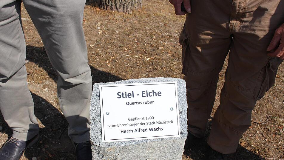 Wenn er ein Baum sein könnte, wäre Alfred Wachs am liebsten eine Eiche. Eichen seien knorrig, standfest, wurzeln tief und - "die Eiche hält am längsten", antwortet der Ehrenbürger der Stadt Höchstadt auf die Frage. An einer Eiche, genau gesagt einer Stiel-Eiche, wurde das "grüne" Engagement von Alfred Wachs für seine Stadt jetzt "festgemacht". Seit Mittwoch erinnert eine Tafel an die Verdienste des Ehrenbürgers um ein grünes Höchstadt.