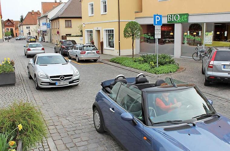 Wildes Parken im Visier Um zu prüfen, wie sich Parkplätze in diesem stark frequentierten Bereich auf den Verkehrsfluss auswirken, wurden am Dienstag zwei Stellflächen auf das Pflaster gepinselt. "Wir werden mit dem Arbeitskreis Verkehr die Auswirkungen genau beobachten", kündigt Günter Schulz an. Erst dann könne man daraus Schlüsse ziehen. Einig sei man sich im Arbeitskreis aber, auf die kleine Grünfläche verzichten zu können. Ende Mai soll dann mit den Anliegern in einer Bürgerversammlung besprochen werden, wie man das Areal, zu dem auch der geschotterte Parkplatz am Wohn- und Geschäftshaus gehört, gestaltet.