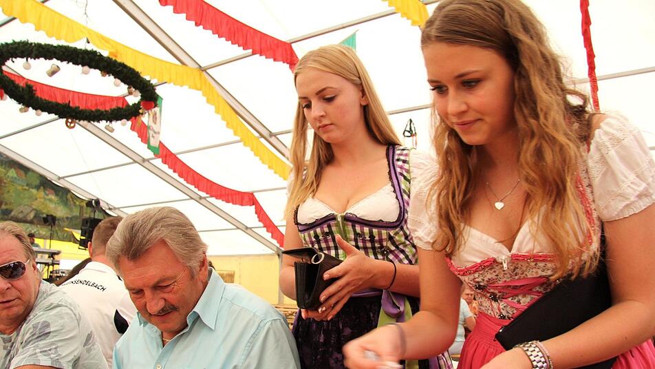 Im Zelt waren auch die Ortsmadla unterwegs, verkauften Lose und durch die "großzügigen Loskäufer" dürfte die Kasse der Ortsburschen um Einiges aufgebessert worden sein. Der "Haupttreffer", der stattliche Kirchweihbaum, wurde am Abend verlost.