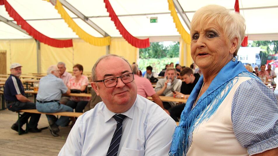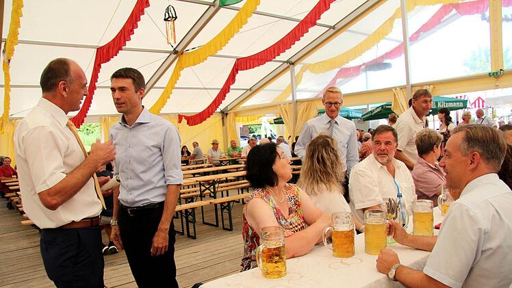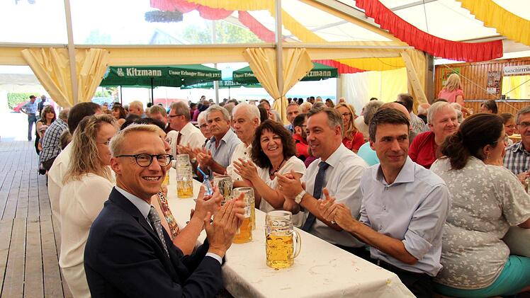 Auch Landrat Alexander Tritthart nahm sich die Zeit, um mit Gemeinderäten und Ehrenamtlichen Gespräche zu führen. Denn gerade die Ehrenamtlichen wurden von Bürgermeister Heinrich Süß - der von einer Kerwa mit Kaiserwetter und von gelungenen und gut besuchten Tagen mit einer tollen Stimmung sprach - gesondert begrüßt. Als der Bürgermeister die langjährige gute Seele der Ortsburschen besonders begrüßte und ihr langjähriges Wirken unter Beifall kurz würdigte, musste sich Gretl Trebisch einige Tränen aus den Augen wischen.