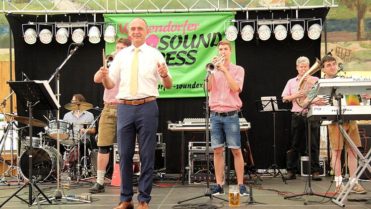 Zur guten Stimmung trug auch der "Weisendorfer Sound Express" einen wesentlichen Teil bei, der in Weisendorf traditionell vom Bürgermeister bei einem Marsch dirigiert wird. Denn beim Weisendorfer Frühschoppen ist es ebenfalls Tradition, dass der Bürgermeister mindestens ein Stück dirigieren muss. Das meisterte Süß ebenso souverän wie den Anstich am Kirchweihfreitag. Das Publikum klatschte den Takt und an den Tischen hieß es: "Gut gemacht."