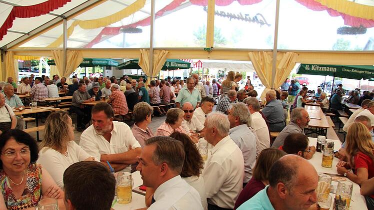 Und die waren sogar mit Kind und Kegel da. Die Besucher im und vor dem Festzelt im kühleren Biergarten. Auch die Bürgermeister Klaus Hacker aus Oberreichenbach und Ludwig Wahl (beide FW) aus Röttenbach genossen die besondere Atmosphäre und gute Stimmung in Weisendorf. Tradition hat es in Weisendorf auch, dass die Schulleitung, Firmenvertreter und Vertreter der beiden Banken sowie von Ingenieur- und Planungsbüros, die mit Weisendorf kooperieren, sich einige Stunden Auszeit nehmen. Sie nutzen die Gelegenheit, mit den politischen Vertretern Gespräche auf dem "kurzen Dienstweg" führen.