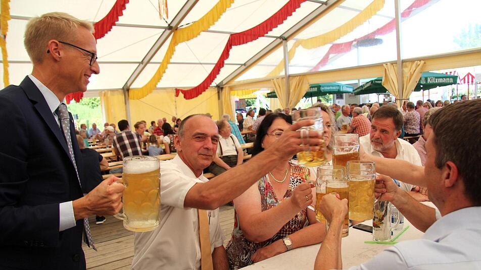 Ein gut gefülltes Zelt, prächtige Stimmung, bestes Wetter und wieder Gäste aus Politik, Wirtschaft und Gesellschaft - da muss sich ein Bürgermeister doch wohl fühlen. Und Bürgermeister Heinrich Süß fühlte sich wohl und konnte auch heuer wieder zahlreiche Gäste begrüßen.