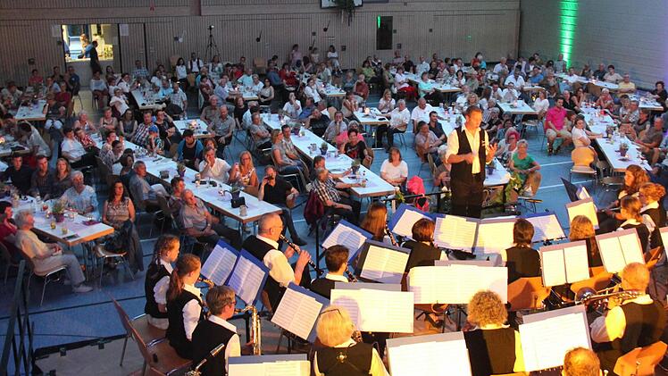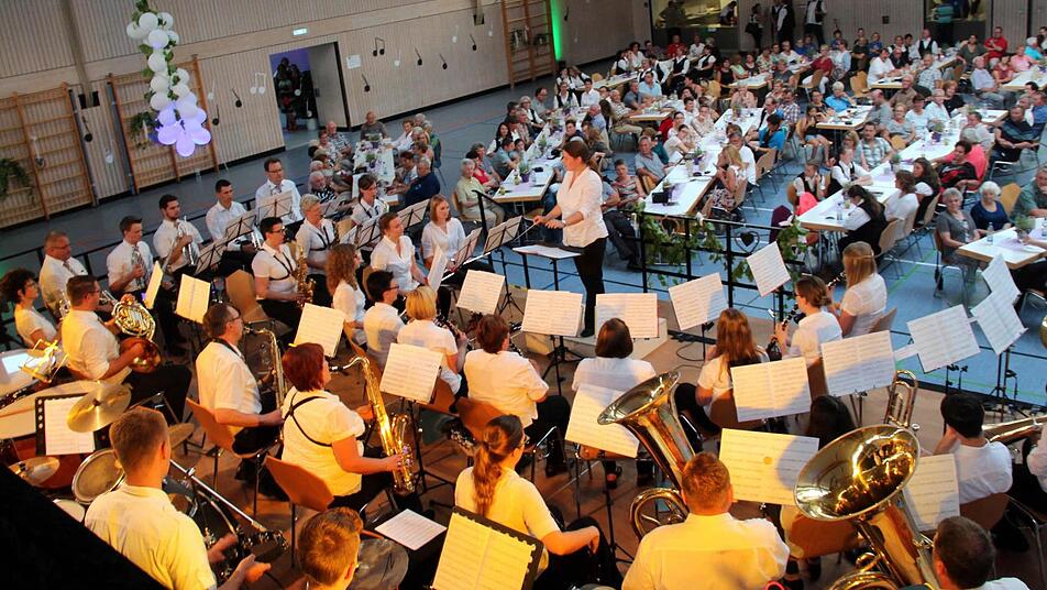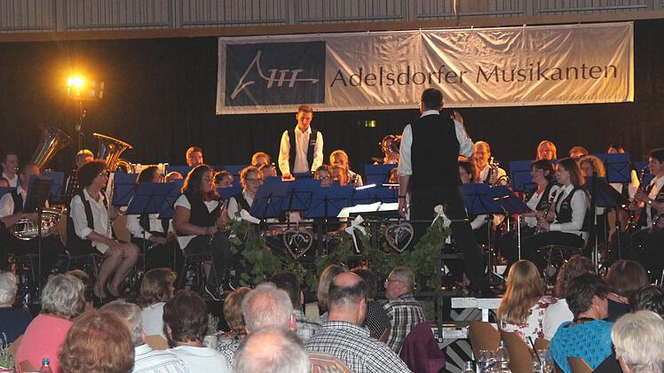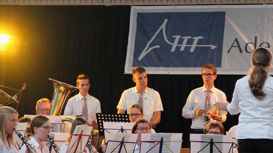 Nicht im lauschigen Schlossgarten, sondern wegen schlechter Wetterprognosen in der Aischgrundhalle musizierten die Adelsdorfer Musikanten.