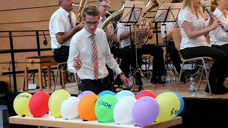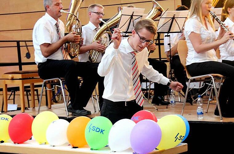 James Last's goldene Hits ließen so manchem Besucher das Herz höher schlagen und bei der Luftballonpolka mit Knalleffekt ließ der Schlagzeuger die Ballons gekonnt im Rhythmus platzen. Mit einem Dank für die Blumen (Udo Jürgens) ging es in die Pause, nicht ohne einen großen Applaus für die Altbächer mit ihrer Dirigentin Nicole Bertsch.