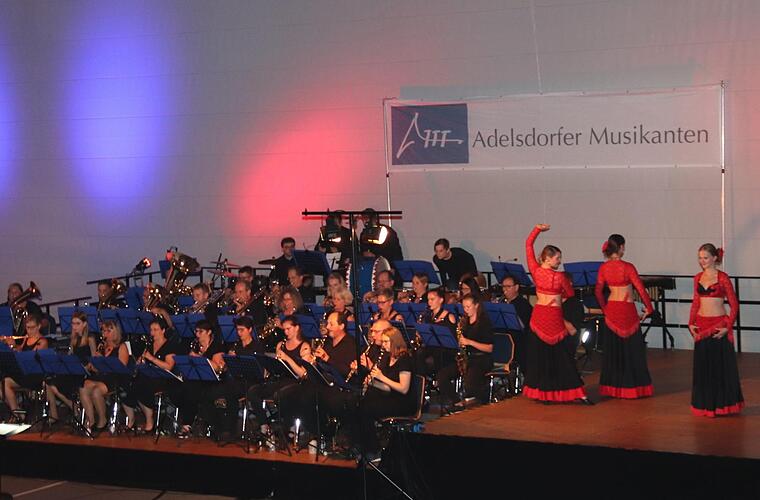 Es war wieder ein Sommerkonzert ohne reinen Konzertcharakter. Eine kurzweilige Moderation, vorgetragen von Vera Holfelder und Johannes Ort führte das Publikum von der guten alten Zeit ins Heute und zurück nach Adelsdorf. Ein Highlight war die Tanzgruppe "Chakra Dance Company" (Ltg. Seetha) aus Nürnberg, die auf den Spanischen Zigeunertanz einen Paso Doble aufs Parkett legte.