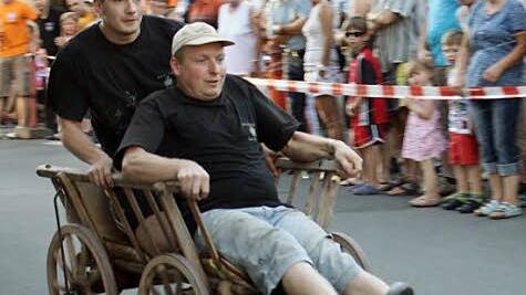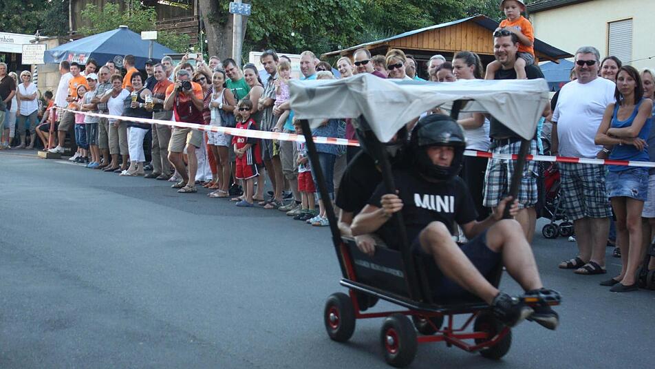 Die Aascher Kerwasburschen lassen sich alle Jahre etwas einfallen, um den schon traditionellen Wettkampf zum Kerwaauftakt interessant zu gestallten. Bierkästen, Brühtröge, Bobby-Cars - sie sind schon auf allem möglichen um die Wette gefahren. "Langsam gehen uns die Gefährte aus", meint Zöbelein. "Aber irgendwas wird uns nächstes Jahr schon einfallen."