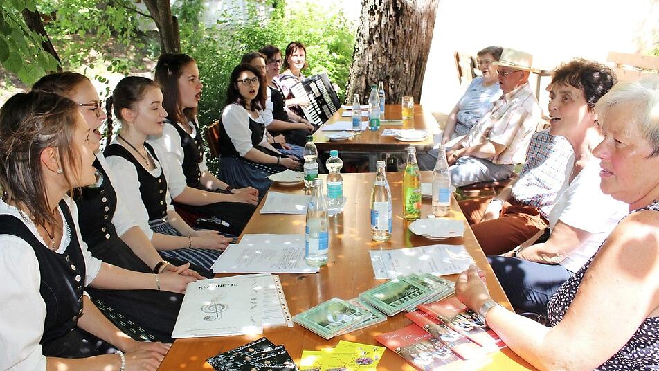 Auf den Kellern trafen am frühen Nachmittag nach und nach Volksmusik begeisterte Besucher aus dem weiten Umkreis ein. Festzustellen war dies, weil die Nichthöchstadter sich erst Orientierung verschaffen mussten. Bei den "Eschenbacher Madli" auf dem Kirchners-Keller ging es schon bald recht lustig zu. "Meine Schwester ist ein Besen", sangen und spielten die jungen Frauen mit ihrer Leiterin Heidi Böhringer. "Ich weiß noch eine Strophe", rief Annemarie Häfner, die mit ihrem Mann das lustige Ensemble besuchte. Und die "Madli" mussten zugeben, dass sie von den Höchstadtern noch etwas lernen konnten.