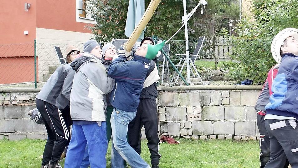 Großen Anklang fand auch der kleine Gaudiwettbewerb, der heuer am Freitagabend zum ersten Mal veranstaltet wurde. Sechs Vereine kämpften in verschiedenen Kirchweih-Disziplinen gegeneinander - darunter auch Freunde aus der Lutherstadt Wittenberg, die eine enge Verbindung zu den "Junggesellen" pflegen.