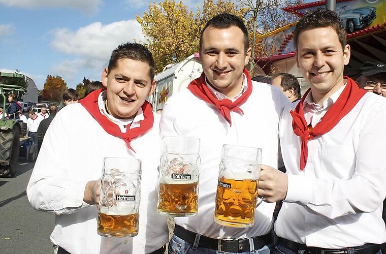 Mit 30 in Rente - wer träumte da nicht davon? Sebastian Fochler, Volker Hack und Andreas Freymann aus Vestenbergsgreuth genießen dieses Privileg. Nach 16 Jahren bei den "Junggesellen", den Kerwasburschen des Teeortes, war es am Wochenende ihre letzte Kirchweih, die sie aktiv mitgestalteten.