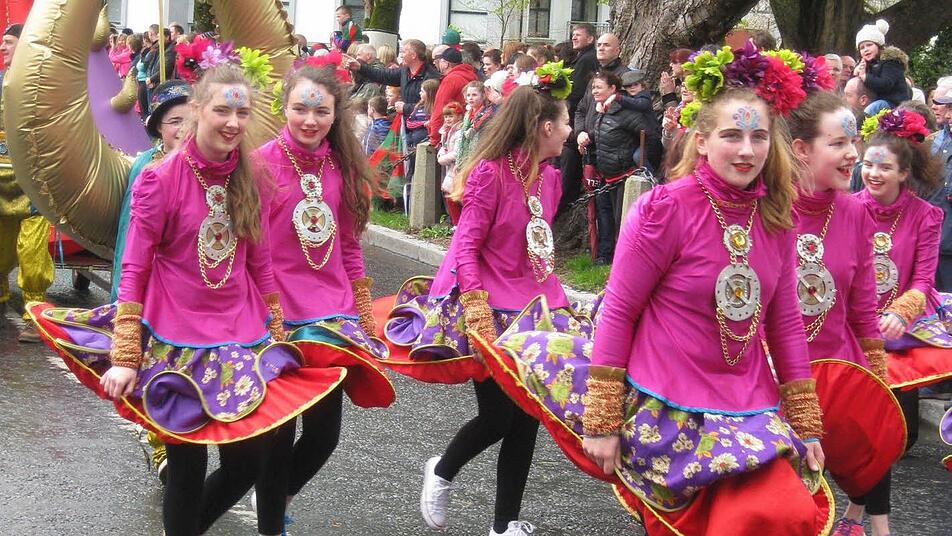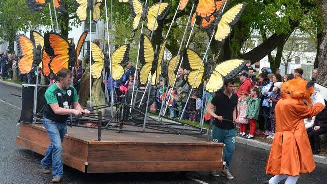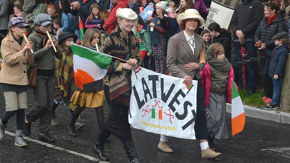 Mit einer großen, bunten Parade von der Rosenkranzkirche durch die Straßen der Stadt bis zur Mall, einem großen grünen Platz im Herzen Castlebars, begannen die Feierlichkeiten. Den Zug führten zwei große Limousinen mit dem Kennzeichen 1916 an. In einem Auto saßen die zwei ältesten Bürgerinnen des County Mayo (103 und 104 Jahre) und im anderen der jüngste Mitbürger, geboren 2016.