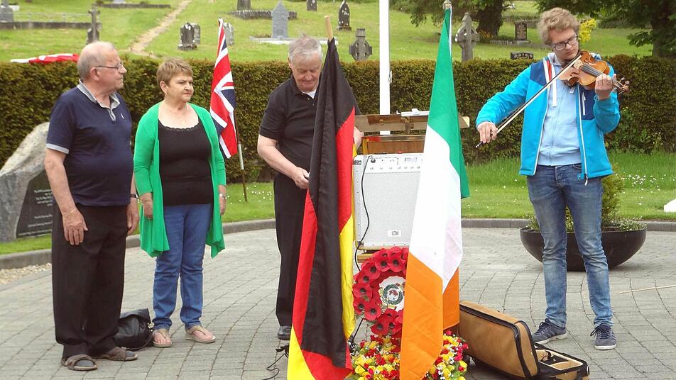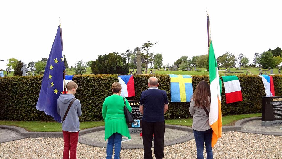 Die vergangene Woche hatte für die 20 Jugendlichen aus Höchstadt und Umgebung viele Highlights zu bieten. Sehr bewegend war das Gedenken im Mayo Peace Park of Remembrance. Nachdem Klara Murphy für Irland, Christian Kaspar für die USA und Julia Ortlieb für Deutschland die Flaggen hissen durften, gedachte die Höchstadter Gruppe zusammen mit einem irischen Ehepaar ihrem für die Vereinten Nationen im Libanon gefallenen Sohn bei einer Kranzniederlegung. Laurence Fischer untermalte die Zeremonie mit zwei Geigensoli.