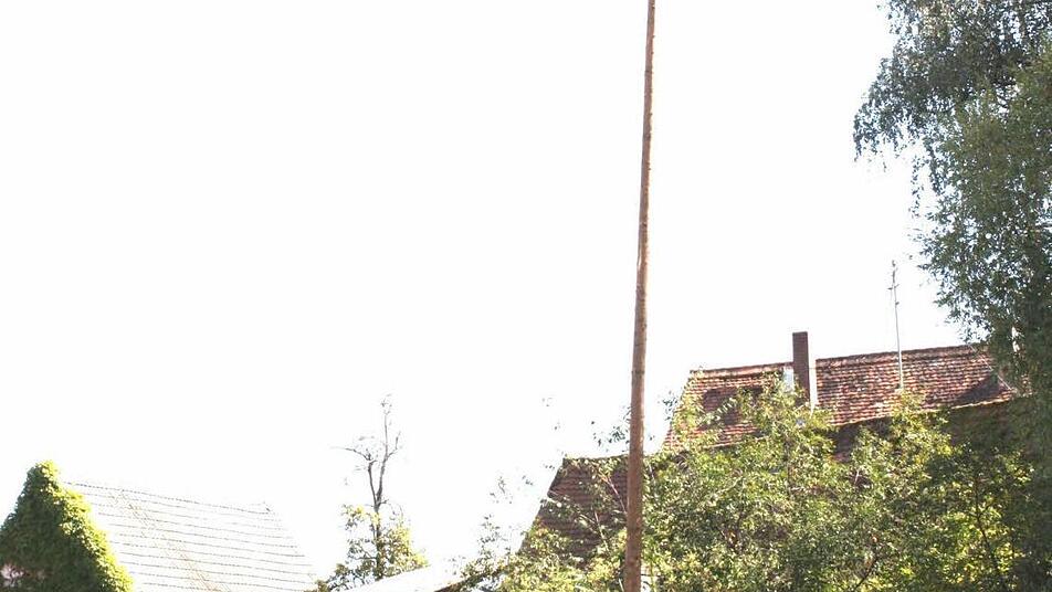Dazu gab es noch die Besonderheit der Kirchweihfichte mitten im Weiher. Das haben sich die Förtschwinder Kerwasburschen im vergangenen Jahr ausgedacht und heuer wiederholt. Wacker durch das Wasser marschiert und den Baum dort aufgestellt - weit ab für böse Buben, die möglicherweise darauf aus sind, das gute Stück zu schälen. Auch hier kamen die Flöße zum Einsatz. Das Verkeilen und Befestigen von oberhalb war einfacher als aus dem Wasser heraus.