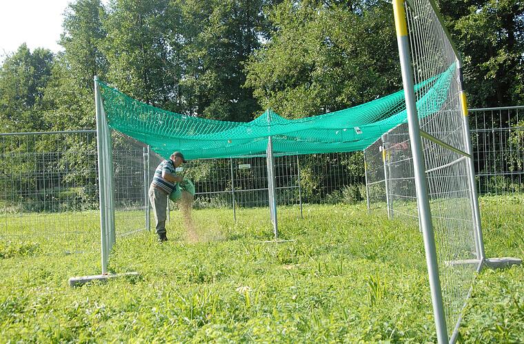 "Wir haben uns in den letzten Tagen schon einen Kopf gemacht", sagte die städtische Umweltbeauftragte Monika Preinl. So wurde auch die Möglichkeit des Abschießens geprüft. Und verworfen. Denn dort, wo die Gänse in Scharen auftreten und auch den meisten Schmutz hinterlassen, so vor allem Kot, könne man schlicht nicht schießen. "Am Bolzplatz ist es zu eng", sagt Preinl. Hinter der Aurach führt ein Radweg vorbei, und direkt angrenzend liegt ein Seniorenheim.