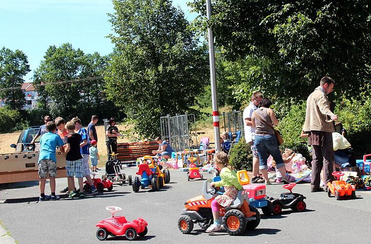 Neben leckeren Speisen und kalten Getränken, aber auch Kaffee und verlockenden Kuchen gab es viele Angebote für die Kinder. Sie konnten sich entweder am Bastel- und Maltisch künstlerisch betätigen, mit den Big-Fahrzeugen um die Wette fahren oder am Kicker ihren Meister suchen.