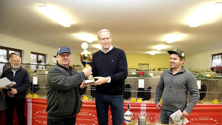 Vor der Lokalschau hatten die Preisrichter Rupert Lunz und Franz Friedl sowie Harald Paulus die Tiere der Züchter bewertet und die Punkte vergeben. So standen bei der Eröffnung die Pokale bereit, um vom Schirmherrn übergeben zu werden. Den Stadtpokal mit den besten sechs Jungtieren und 568 Gesamtpunkten sicherte sich Franz Pitz, der auch den Rassepokal "Tauben" für die fünf besten Jungtiere und 474 Punkten aus den Händen des Bürgermeisters entgegennehmen konnte. Für die fünf besten Jungtiere und 474 Gesamtpunkten wurde der Rassepokal "Hühner" an Jan-Tobias Dach übergeben und Rassepokal "Zwerghühner" ging mit 475 Punkten an den Züchter Hermann Zeil.