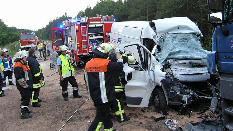 Zur genauen Klärung des Unfallhergangs wurden ein Sachverständiger und ein Staatsanwalt hinzugezogen. Einsatzkräfte der Höchstadter Stützpunktwehr bargen das Unfallopfer aus dem völlig demolierten Führerhaus des Lieferwagens.