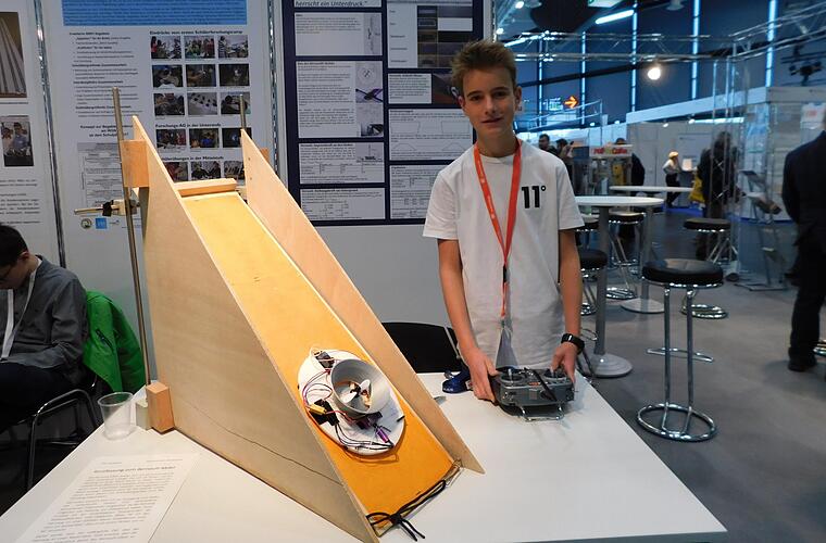 Der Höchstadter Gymnasiast Finn Rudolph hat als Aussteller an der Fachmesse Iena teilgenommen. Der 14-Jährige präsentierte in Nürnberg sein "Bernoulli-Mobil".