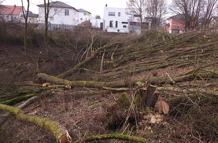 Abgesprochen Das Wasserwirtschaftsamt hat diesen Kahlschlag angeordnet, um das im Tal liegende Wohngebiet vor Überschwemmung zu schützen. Nach Absprache mit der Unteren Naturschutzbehörde und Hans Krautblatter aus dem städtischen Agenda-Arbeitskreis Umwelt wurden die Motorsägen angeworfen.
