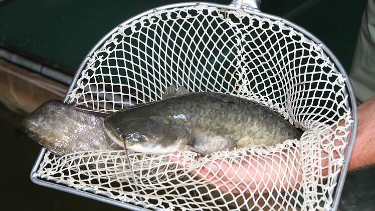 Beim Abfischen achtet Georg Kaiser penibel darauf, dass keine Raubfische durch die Gräben in den nahe gelegenen Fluss gelangen. Denn dort könnten sie massive Schäden anrichten. Massen an kleinen Welsen tummelten sich die vergangenen Tage in seinem engmaschigen Netz. "Eine Spezialanfertigung aus Tschechien.