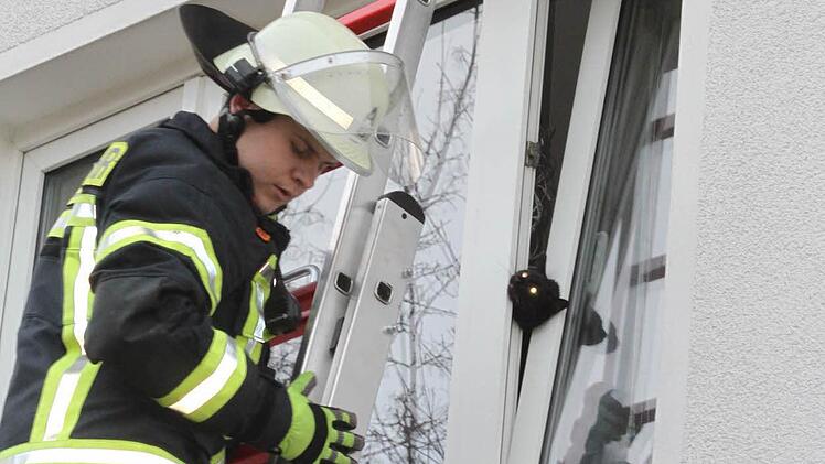 Die Drehleiter der Feuerwehr musste nicht ausrücken, in den ersten Stock ging es auch per Steckleiterteile. Doch ganz so einfach war dann die Rettung nicht. Denn die Katze am Kopf einfach nach oben in Richtung breitere Öffnung ziehen, misslang zum einen an der Schwere der Katze und zum anderen an deren Widerstand.