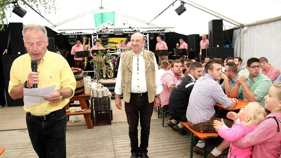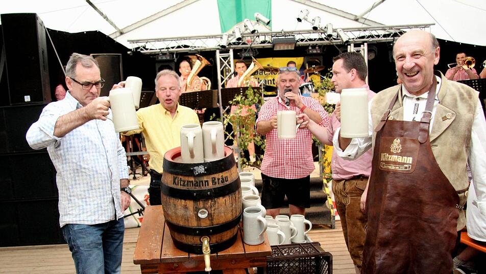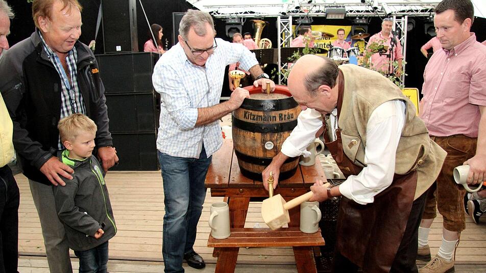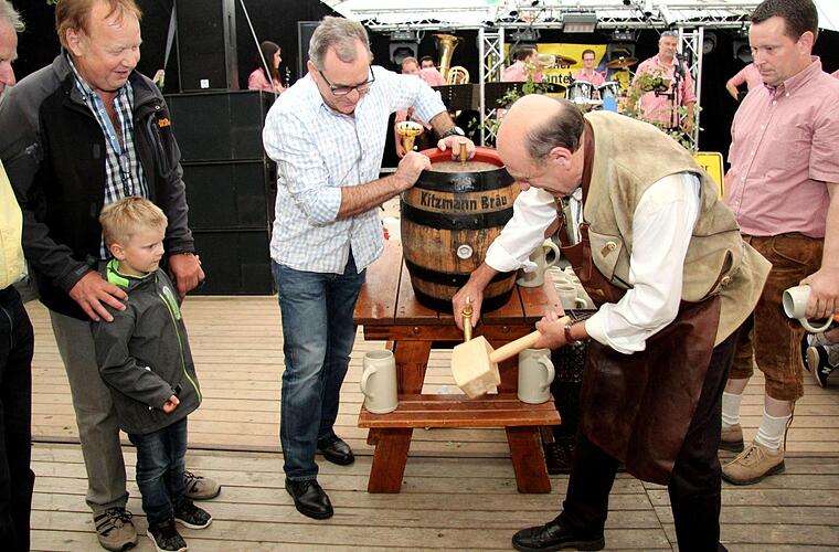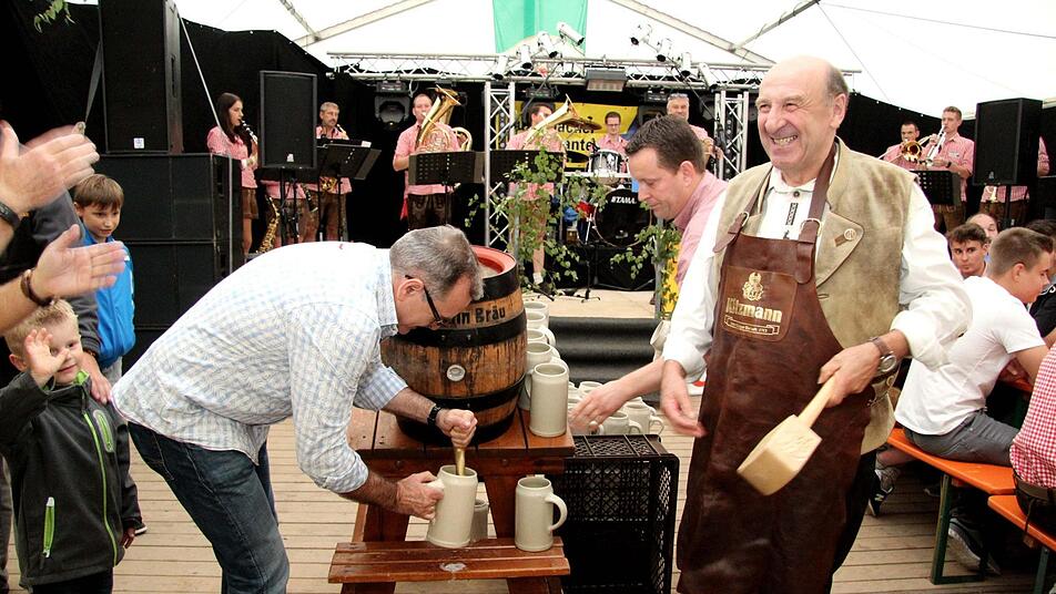 Routiniert stach der Bürgermeister das erste Fass Freibier an und konnte auch in diesem Jahr wieder mit "Stammgästen" aus der Schweiz anstoßen. Der Bürgermeister und der FSV-Vorsitzende wiesen darauf hin, dass die Kerwa in dieser Größe nur gefeiert werden kann, weil die Kerwasburschen und Vereinsmitglieder kräftig mit anpacken, dafür gab es neben Dankesworten auch einen kräftigen Applaus der sich sichtlich wohlfühlenden Kirchweihbesucher.
