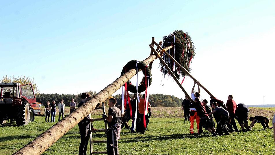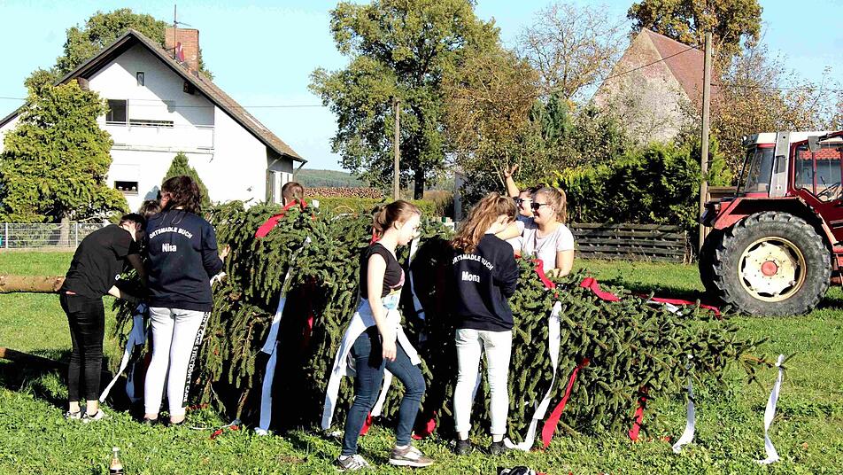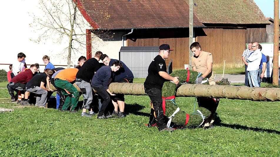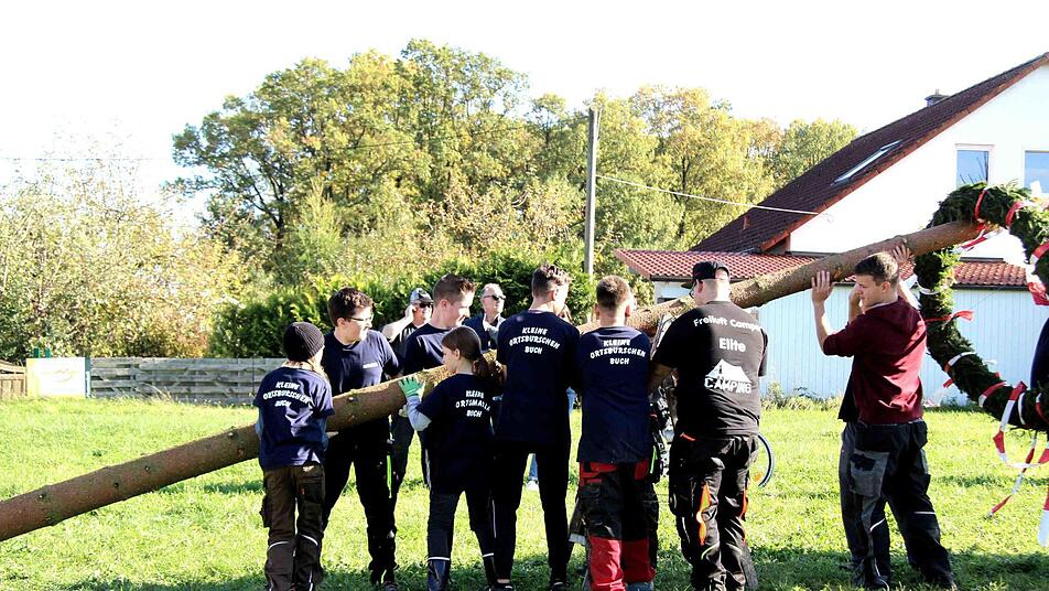 Die lange Nacht war auch einigen Ortsburschen am Samstag beim Aufrichten des Baumes noch anzusehen, und manche Stimme klang etwas heiser. Traditionell werden in Buch unter dem Kommando des Bürgermeisters zwei Bäume geholt. Die kleinen Ortsburschen und Ortsmadla wurden dabei von Vätern und Opas unterstützt, während sich die größeren Ortsburschen noch eine Pause gönnten. Die gönnte sich auch der Bürgermeister, der ganz entspannt von einem aus einem Baumstamm gesägten Sofa die Aktion verfolgte. "Wir haben in Buch gute Leute, und meine Stimme ist heute auch nicht die Beste", meinte Heinrich Süß schmunzelnd und überließ das Kommando Leo Maier.