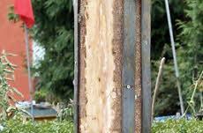Heuer war es nichts für die Nachbarn mit Baumansägen in Vestenbergsgreuth (Landkreis Erlangen-Höchstadt) und die Ortsburschen wie letztes Jahr der Gefahr wegen zum Fällen der Kerwasfichte in Vestenbergsgreuth zwingen. Mit etlichen Flacheisen rund um den Stamm sicherten die "Junggesellen" den gefährdeten Teil des Stammes am Samstag gleich nach dem Aufstellen.