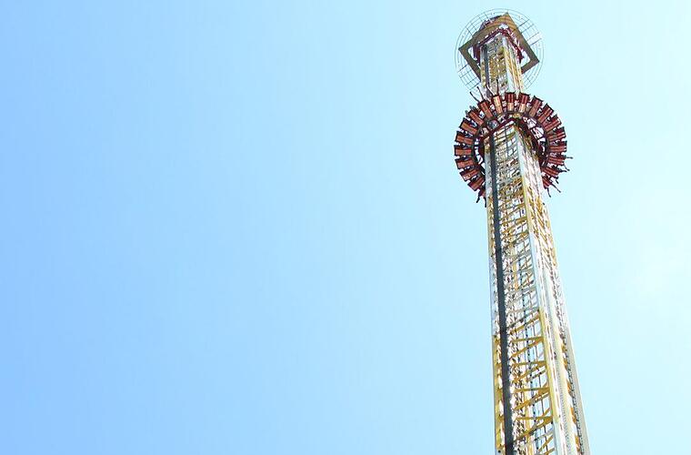 Denn was soll es denn neben Schiffschaukel und Geisterbahn noch geben, was die fahrgeschäftigen Bergbesucher noch nicht gesehen haben? Auch einen sogenannten Freefall-Tower, bei dem man aus schwindelerregender Höhe in einer Kabine gen Boden rauscht, gab es schon. Doch das, was sich heuer auf dem Berg auftürmt, ist noch einmal eine Hausnummer höher.
