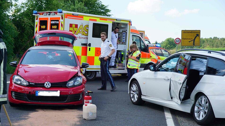 Gemeldet wurde eine eingeklemmte Person mit einem beteiligten Kind. Die Polizeibeamten und ein Ersthelfer betreuten die verletzte Fahrerin und kümmerten sich zum Eintreffen des Notarztes und des Rettungsdienstes um die leicht verletzte Mutter und ihr Kind. Die Feuerwehren aus Buch, Falkendorf, Hammerbach und Herzogenaurach sowie Weisendorf wurden alarmiert.
