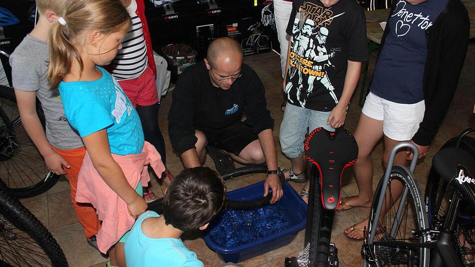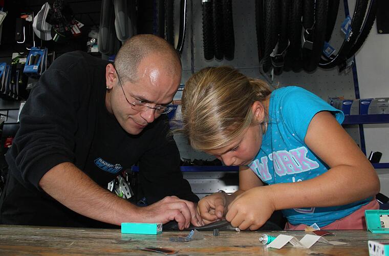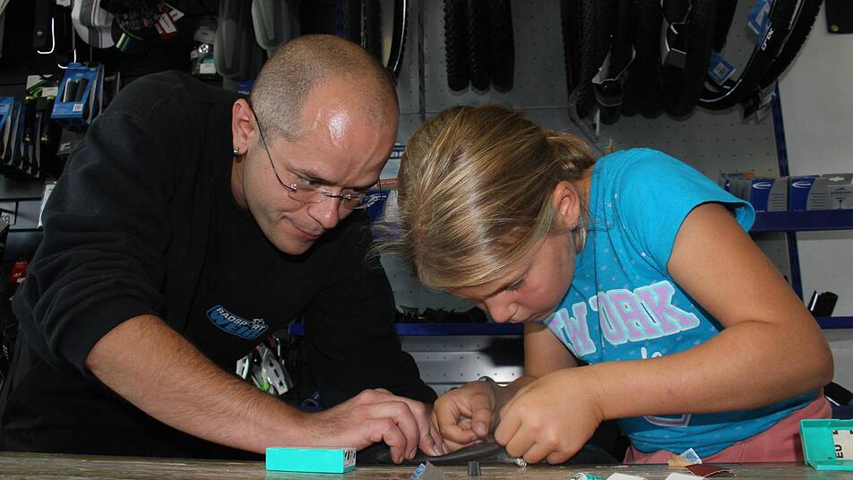 Nach einer kurzen Einführung durch den Radprofi Weiß konnten die Kinder selbst ihr Glück an den extra präparierten Fahrradschläuchen versuchen. Auch die zwölfjährige Laureen reparierte ihren Reifen im Handumdrehen. "Das war ganz einfach", erzählte die leidenschaftliche Radlerin.