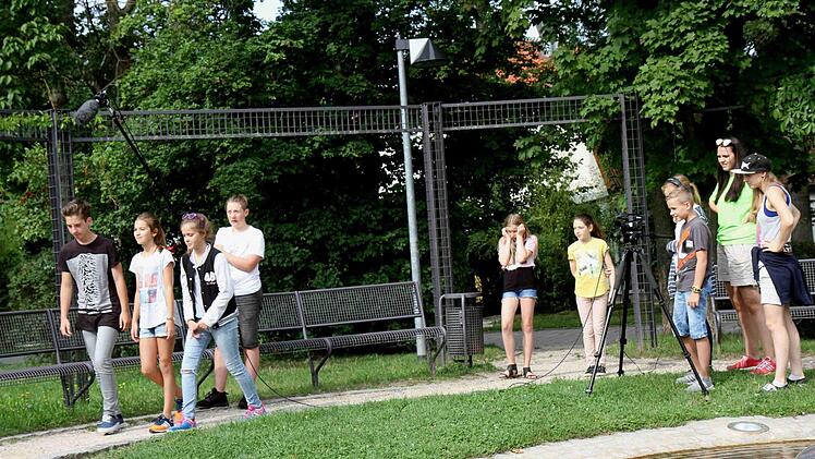 Dabei machten die teilnehmenden Kinder auch die Erfahrung, dass nicht einfach drauflos gefilmt werden kann. So müssen die Einstellungen an der Kamera ebenso stimmen wie die Standorte der Darsteller und manche Szenen müssen öfter wiederholt werden. Mit Feuereifer waren die jungen Darsteller dabei und ohne zu murren ging es immer wieder zurück auf die Ausgangspositionen und manche Aufnahme musste wiederholt werden, weil Passanten ins Bild liefen oder der Bus mit heulendem Motor am Zebrastreifen anfuhr.