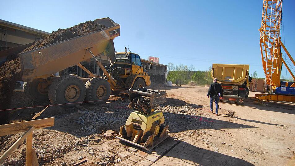 Die Arbeiten auf dem künftigen Fachmarktzentrum an der Erlanger Straße in Herzogenaurach gehen flott vorwärts.