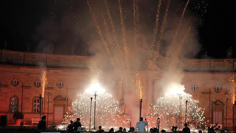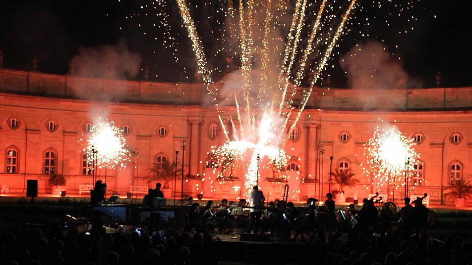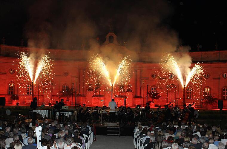 Nach der Pause und einem Medley von George Gershwin folgte das, was die gut 2000 Besucher - neben der grandiosen Kulisse des Schönborn-Schlosses - wohl am meisten angezogen hatte: Georg Friedrich Händels "Music for the Royal Fireworks" vor dem Hintergrund eines echt fantastischen Feuerwerks. "Maestro" Dankwart Schmidt, Experte, Dirigent und Dozent "für Blech", der seit vielen Jahren in Pommersfelden dabei ist, leitete das Orchester. In diesem hatten sich Musikstudenten aus 24 Nationen zusammen gefunden.