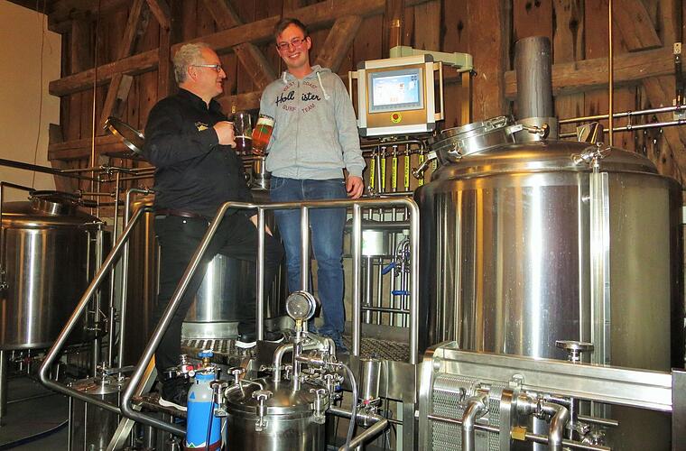 22 Jahre ist Peter Oberle jung - und hat aus einem anfänglichen Hobby, von seinen Eltern finanziell angeschoben, ein professionelles Gewerbe entwickelt. Der gelernte Koch hat nach seinem 16. Geburtstag, als er dem bierigen Alkohol zusprechen durfte, mit anfangs 25 Litern und einem Waschkessel experimentiert und sich nach und nach das notwendige Rüstzeug angeeignet. Der Träger des Staatspreises als einst bester Absolvent der Berufsschule in Höchstadt organisierte bei einer Brauerei-Messe die notwendige neue Einrichtung einer chinesischen Firma - unter anderem einen Kochkessel sowie Maische- und Läuterbottich - und baute diese mithilfe zweier Freunde, einem Landmaschinenmechaniker und einem Ingenieur, mit Siemens-Steuersystem in der renovierten Scheune fachgerecht zusammen.