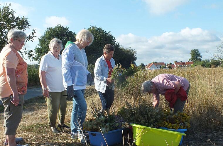 Am Dienstagmorgen waren Frauen des Frauenbunds der Herzogenauracher Stadtpfarrei in der Flur bei Beutelsdorf unterwegs, um Kräuter für Wurzbüschel am Fest Mariä Himmelfahrt zu sammeln. Das niederschlagsarme Wetter macht es in diesem Jahr besonders schwierig, geeignete Pflanzen zu finden.