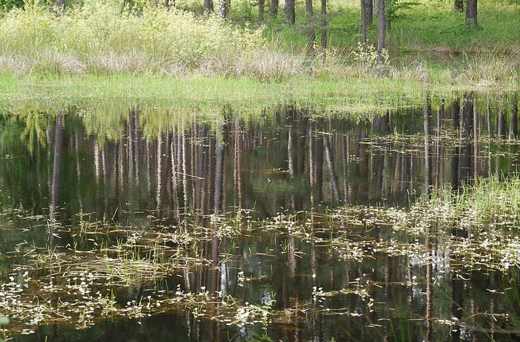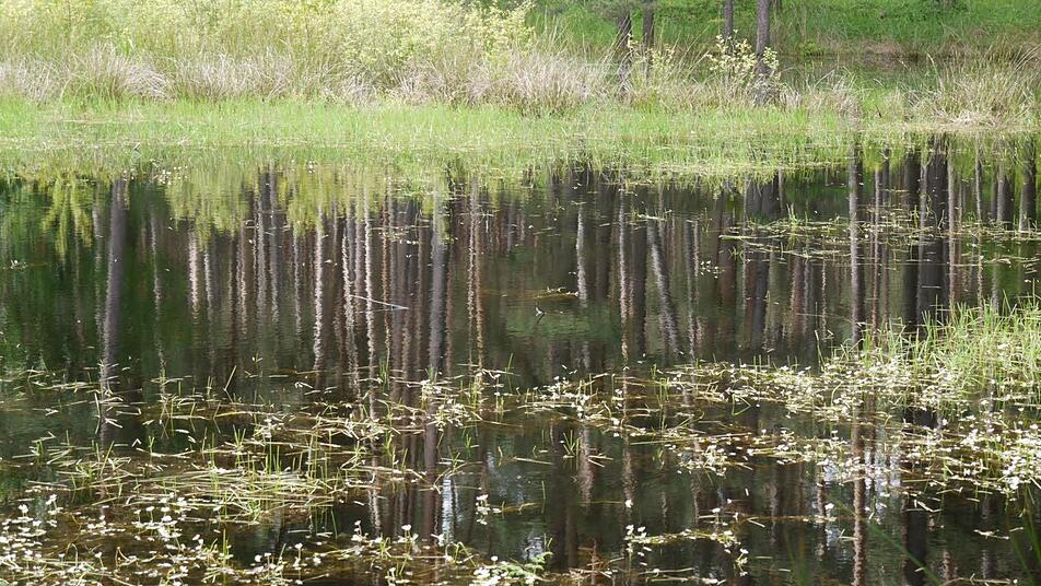 Aus der Zufluchtsstätte im 30-Jährigen Krieg wurden Fischgewässer. Die verlandenden Teiche in Höchstadt bieten heute einen Lebensraum für Pflanzen und Tiere, die mit dem sauren Wasser und den nährstoffarmen Böden zurecht kommen.