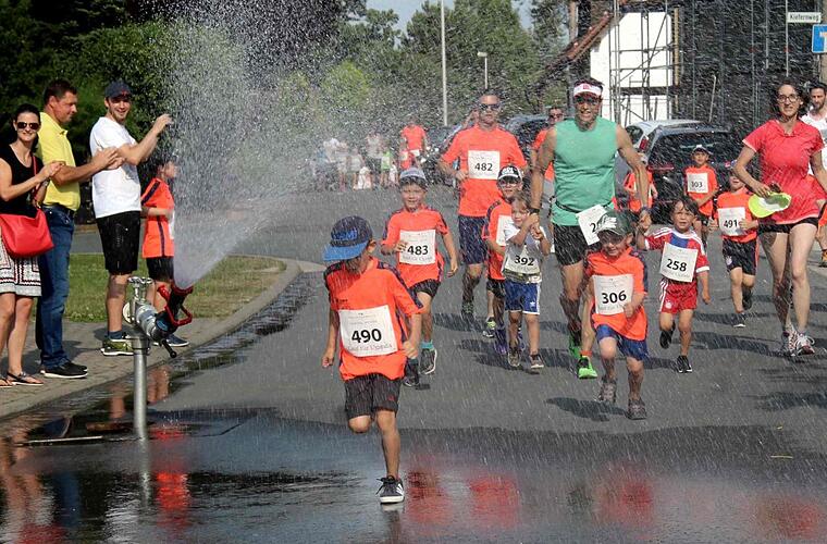 Moderiert von Axel Gotthardt und mit lautstarken Rhythmen vom Piranha Social Club aus Herzogenaurach wurden die Läufer auf den Rundkurs geschickt und mit Trommelwirbel wieder empfangen. Stefan Reinmann und Axel Gotthardt schickten mit den Bambinis und den Schülern sowie den Erwachsenen drei Gruppen auf den Rundkurs, und beim Zieleinlauf wurden insbesondere die Bambinis frenetisch gefeiert. Damit die Teilnehmer bei den sommerlichen Temperaturen etwas erfrischt ins Ziel kamen, konnten sie bei der Schule durch einen Sprühstrahl der Feuerwehr laufen.