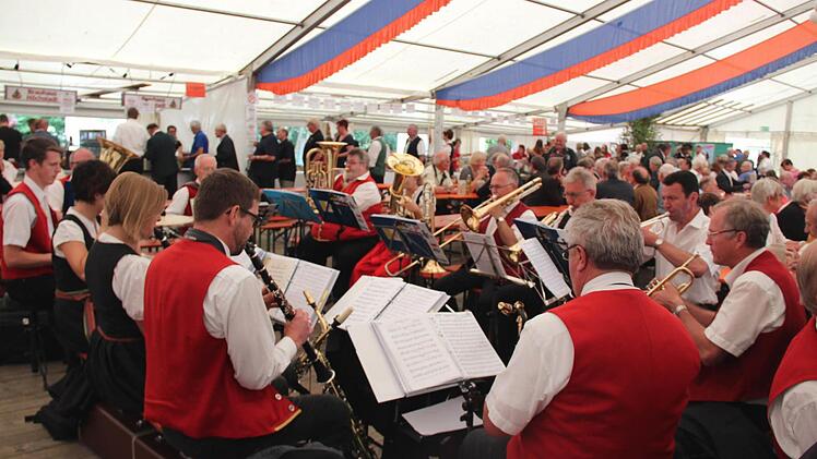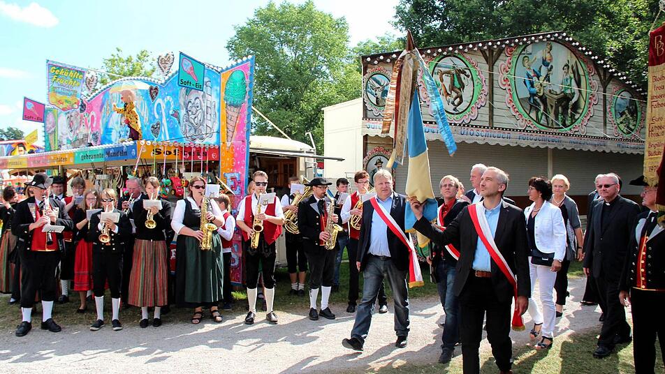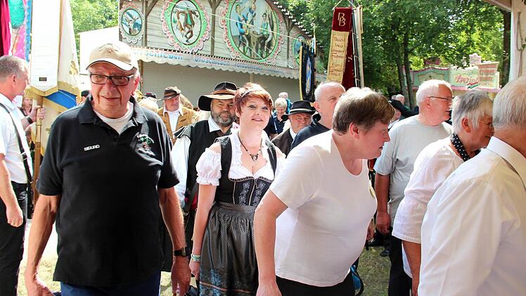 Zum Abschluss des Gottesdienstes erklang die gemeinsam gesungene Höchstadter Nationalhymne, ebenfalls von Oberle mit der Trompete umrahmt. Nach dem festlichen Zug zum Engelgarten waren nicht nur die Gottesdienstbesucher zum traditionellen Frühschoppen im Festzelt eingeladen und das Zelt füllte sich immer mehr.