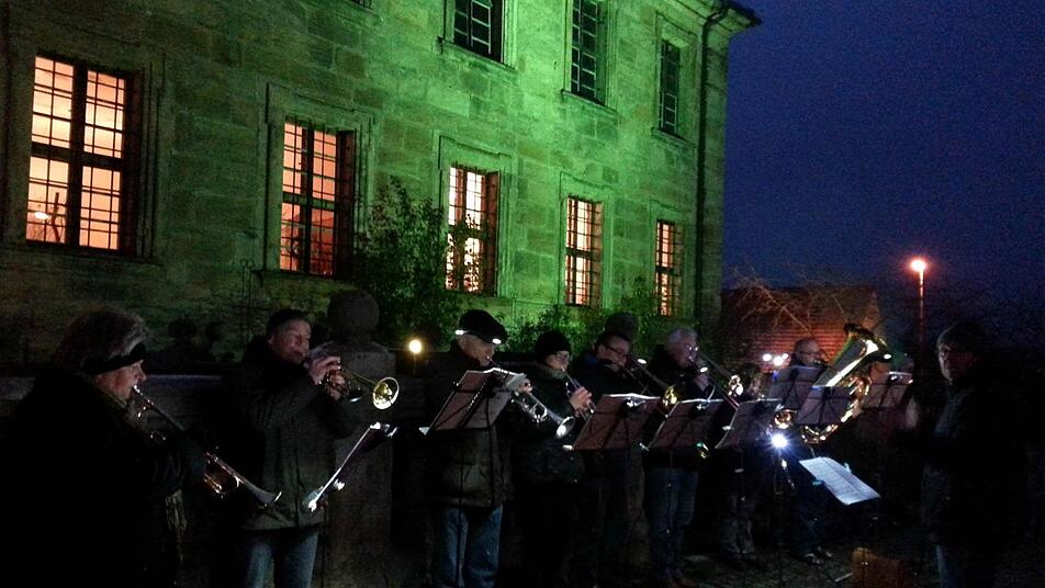Ein Posaunenchor spielte vor dem Schloss weiihnachtliche Musik und auch im Schloss selbst erklangen am Samstagnachmittag stimmungsvolle Weihnachtslieder am Klavier, gespielt von Hella Commichau.