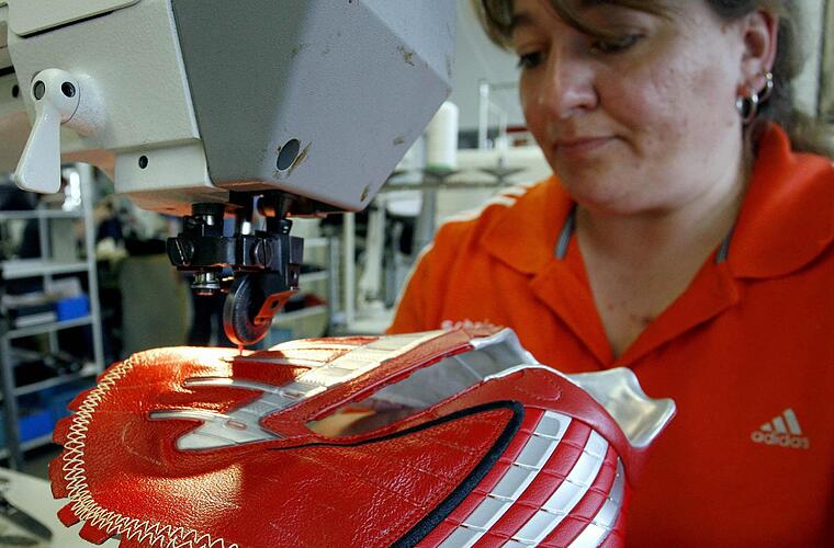 Nur in Scheinfeld (Landkreis Neustadt/Aisch) existiert bis heute eine Fabrik mit 365 Beschäftigten. Dort werden jedes Jahr einige Hunderttausend Fußballschuhe und -Bälle gefertigt. Ein Klacks im Vergleich zu den fast 260 Millionen Paar Schuhen, die das Unternehmen in Asien bei Lohnproduzenten herstellen lässt.