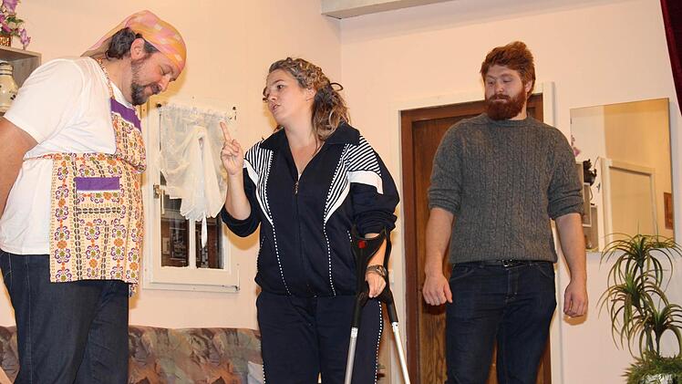 "Morgens Fango - abends Tango!" Erika Brösel freut sich schon auf die Kur, die sie nach einer Operation antreten soll. Mit ihr freut sich aber auch Detlef, seit 25 Jahren ihr Ehemann, der bei Erika ganz schön unterm Pantoffel steht. "Geht die Katze, tanzen die Mäuse" heißt die Komödie, mit der die Theatergruppe des TSV Lonnerstadt am Samstag Premiere feierte. Ein herrlicher Klamauk, so recht nach den Herzen der Zuschauer, die im Sonnensaal ein paar unbeschwerte Stunden verleben konnten.