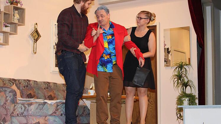 Hinzu kommt Markus Ruhmann, der Opa Kurt nach durchzechter Nacht und "Filmriss" auf eine Art und Weise verkörpert, die beim Zuschauer Lachtränen hervorruft. Dass Opa Kurt in Hedwig, gespielt von Maritta Schockel, noch eine Verehrerin hat, macht die Situation nicht einfacher. Denn die resolute Hedwig kommandiert Klothilde, in der sie die Putzfrau vermutet, über alle Maßen. Am Ende kommt es - fast wie im richtigen Leben: "Kaffee, Cafe Latte oder Cappuccino", fragt Detlef seine vorzeitig zurück gekehrte Ehefrau unterwürfig nach ihren Wünschen. Aber auch die dominante Erika zeigt späte Einsicht.
