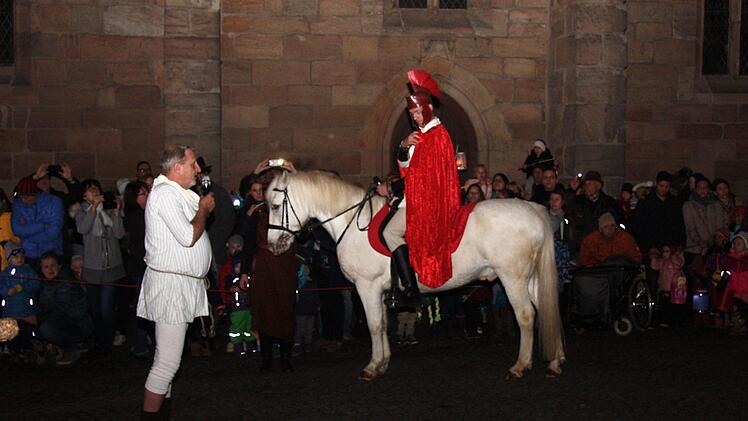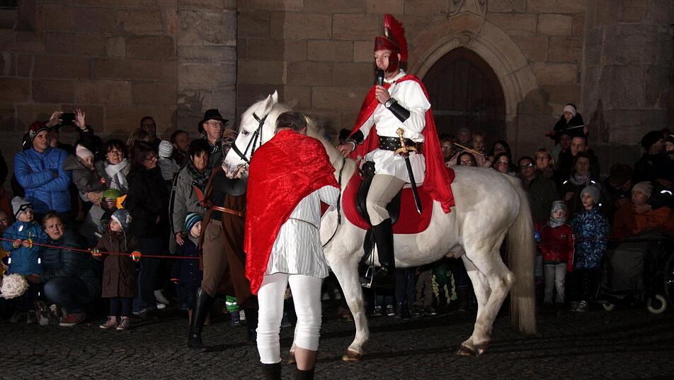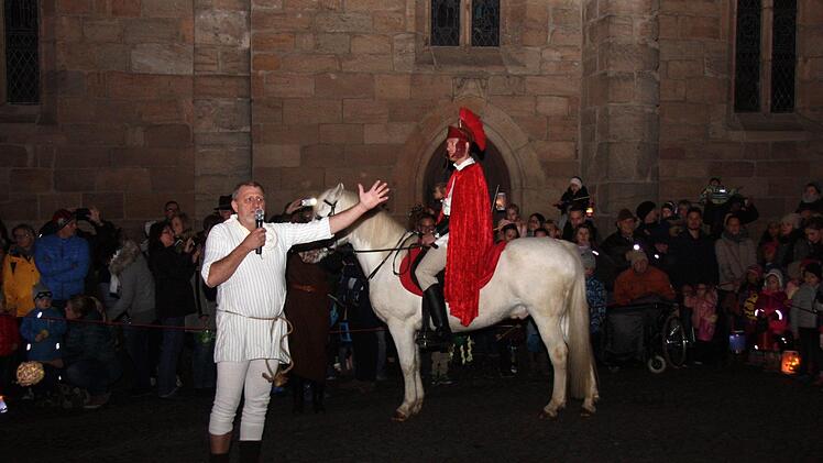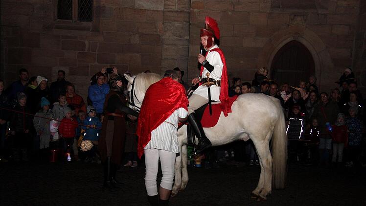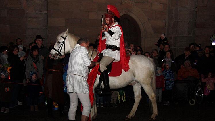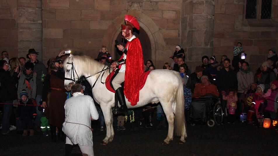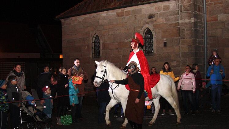 Der traditionelle Martini-Ritt mit Laternenumzug feierte in Herzogenaurach ein kleines Jubiläum. Zum 15. Mal führte der 33-jährige Martin Feucht auf dem Schimmel Toni als St. Martin den Zug an und teilte nach dem Umzug auf dem Kirchenplatz seinen Umhang mit dem Bettler. Der ehemalige Turnierleiter sowie Leiter der Betriebsfeuerwehr am Klinikum der Universität München, Martin Feucht war viele Jahre in der Reitschule Staudenmaier auf dem Reiterhof Hessenmühle aktiv und kommt jedes Jahr am Martinstag in seine Heimatstadt zurück.