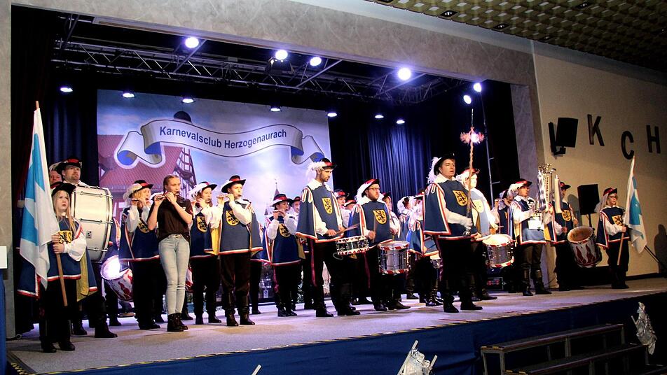 Mit einem Paukenschlag und dem Spielmannszug begann im Vereinshaus pünktlich um 19.11 Uhr die 107. Galaprunksitzung der Karnevalclubs Herzogenaurach.