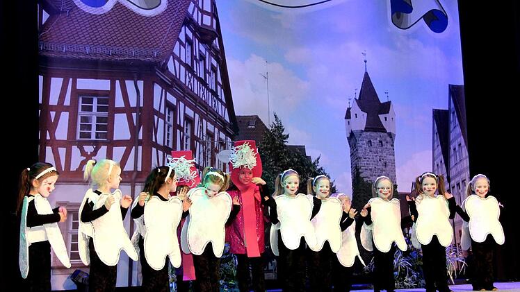 Nach dem Einzug alles Aktiven begann es gleich schwungvoll mit den Bambinis und den Tanzmariechen Amelie und Lina. "Zähnchen blitzeblank" hieß des bei den Bambinis, die mit ihren überdimensionalen Zahnkostümen gleich für die erste Rakete sorgten. Auch die Bütt sorgte immer wieder für viel Lacher und die Showtänze rissen die Besucher von den Stühlen.