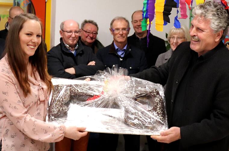 Architekt und Planer Norbert Holzmann ging im Rückblick auf die Baugeschichte ein. Vom Spatenstich bis zur ersten Nutzung der Räume: "Es war ein Rekordjahr!" Als Geschenk hatte er eine (von seiner Frau gebackene) Torte in Form eines Schlüssels dabei. Diesen überreichte er am Ende an Katharina Geinzer - und Pfarrer Jakob bekam den "echten" Schlüssel. Nun durften alle Gäste die wunderschönen neuen Räume besichtigen, bevor es zum gemeinsamen Essen in die Fischküche ging.