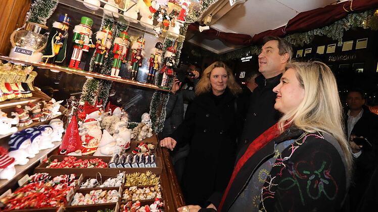 Söder hatte die Minister zu einem Rundgang über den Christkindlesmarkt eingeladen. Bei Rehders Rauschgoldengeln blieb der Ministertross staunend stehen. Weiter ging der Marsch zum Stand des 1.FC Nürnberg und der Feuerzangenbowle am Rathaus. Auf der Kaiserburg feierten die Minister ihre Weihnachtsfeier.
