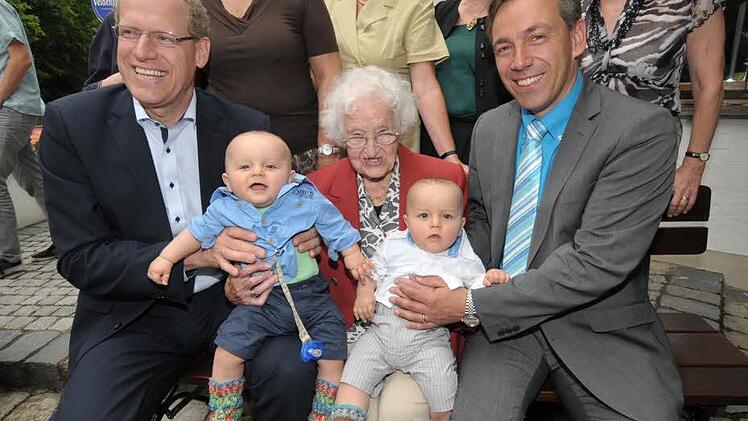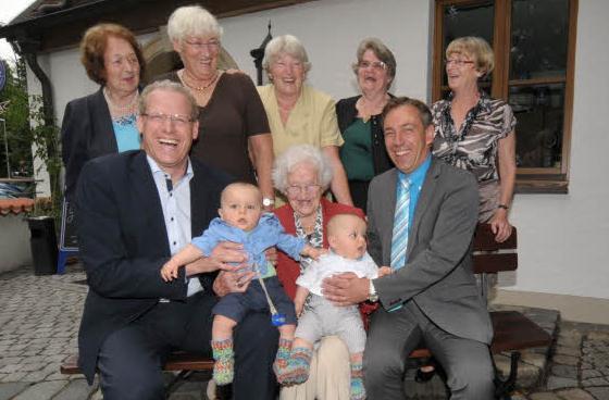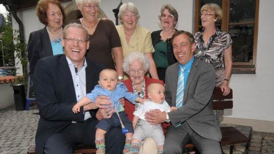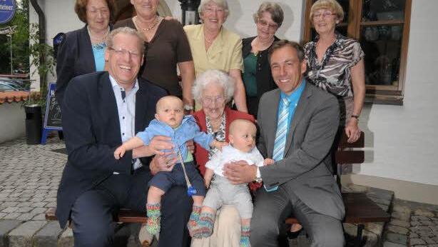 Zur Gratulationstour waren nicht weniger als drei Generationen nach Niederndorf gekommen, um ihrer Mutter, Oma und Uroma Helga die Glückwünsche zu überbringen und mit dem Geburtstagskind einen schönen Tag zu verbringen. Darunte auch Bürgermeister German Hacker, der einer der 18 Enkel ist.