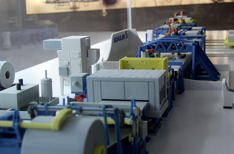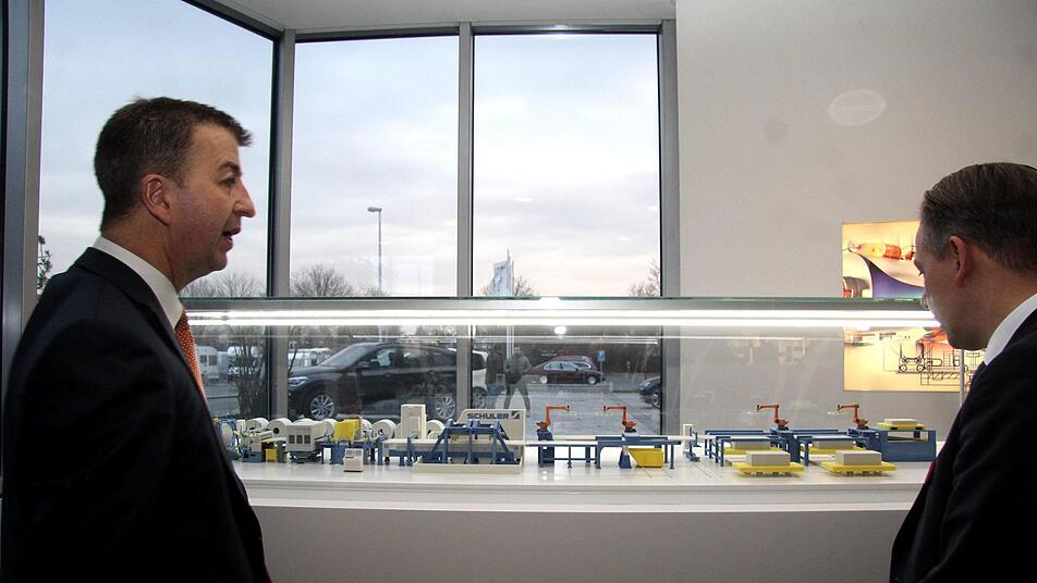 Bei einem Rundgang erläuterten Schwoshuber und Pressesprecher Simon Scherrenbacher sowie Martin Liebel, Leiter Bereich Platinen-Schneidanlagen, dem Landrat die Entwicklung des Unternehmens und insbesondere die Laser-Schnittlinie. Die neuen Anlagen von Schuler produzieren ohne Werkzeuge und übertreffen die Erwartungen, erklärte der Geschäftsführer sichtlich stolz. Laserstrahlen statt tonnenschwerer Werkzeuge sei die Devise. Mit den Schnittlinien aus Heßdorf könnten sich Premium-Automobilhersteller für die Zukunft rüsten. Ein großer Vorteil der Laser-Platinenschneidanlagen sei, dass sich der Kunde Anschaffung, Lagerung, Wartung und Reparatur der teuren Werkzeuge und den Rüstaufwand spart, weil sich die Form der Zuschnitte auf Knopfdruck umstellen lässt.